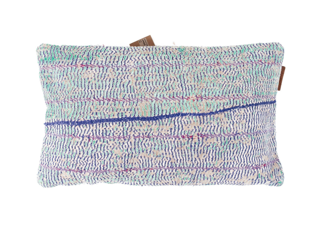 Fine Q are Sari cushions produced from a type of sari that has a different expression than our normal Sari Kantha cushions. They are made of thick recycled cotton sari laid together with several layers in between and with a worn look, where the saris inside help to give the whole pillow a very raw vintage look. They are toned down in colors and patterns and are sewn with smaller and tighter Kantha stitches, which give them an authentic look..